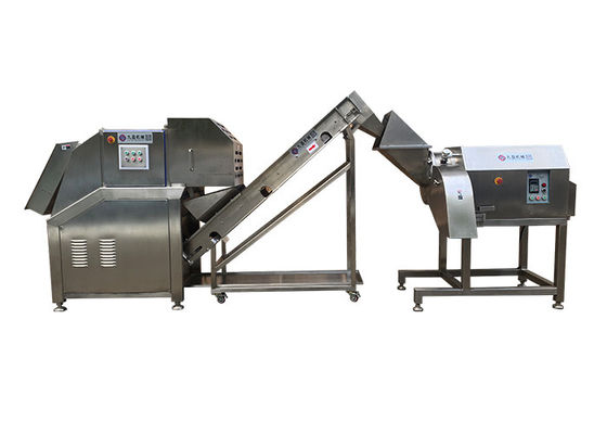Deze verwerkingslijn bestaat uit drie delen: vleessnijder, hijstoestel, 3D vlees dicer. Het is geschikt om het bevroren varkensvlees, het rundvlees, het lam, het vlees van pluimvee, de vissen enz. van gehele stukken te snijden één die keer in kleine of grote kubussen, stroken en plakvorm wordt gesneden.