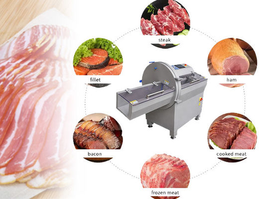 Toepassing:De machine kan worden toegepast om bevroren vleesblokken, ribben, geconserveerde hammen, worstjes te snijden, de snijdikte kan digitaal en nauwkeurig worden aangepast.De temperatuur van het product mag niet dalen tot -5 graden Celsius.